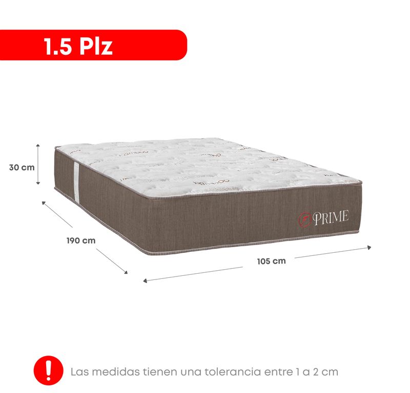 • Colchón Prime de Gama Media, Tela tejido de punto, se puede usar por ambos lados y con resortes Bonell.