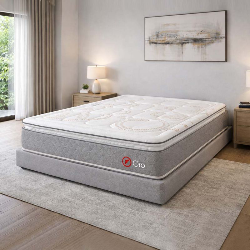 • Colchón Oro de Gama Alta y confort firme con resortes Pocket.