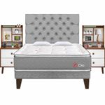 Tarima Europea, Colchón Oro +02 Veladores Fashion + 02Almohadas Viscoelásticas + Protector de colchón + Cabecera Capitone