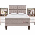 Colchón + Tarima Europea Beige + Cabecera Kimiko + 02Veladores Repisa Fashion + 02 Almohadas Viscoelásticas + Protector de colchón