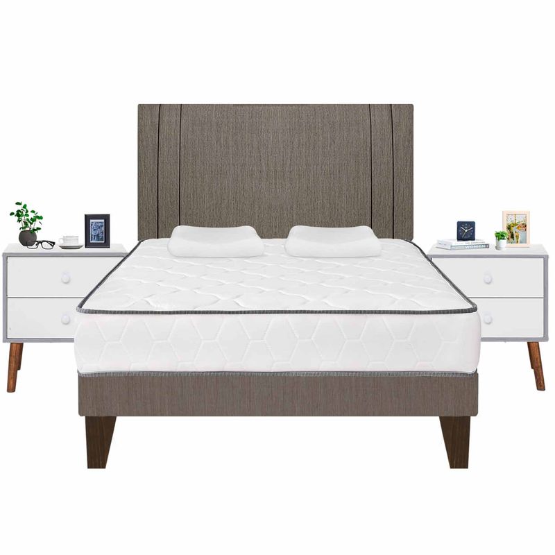 Colchón + Protector acolchado + Tarima + 02 Almohadas Ergo Contour D-16 + Cabecera + 02 Veladores Viena