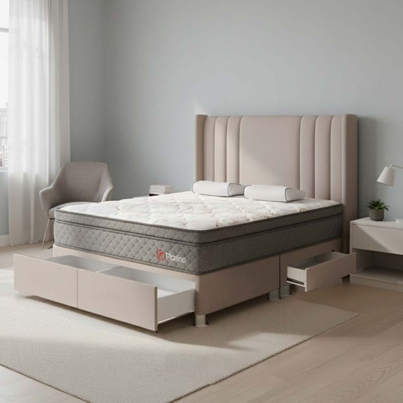 • Colchón Platino de Gama Alta con tela V-Cure, resortes Pocket y confort suave.