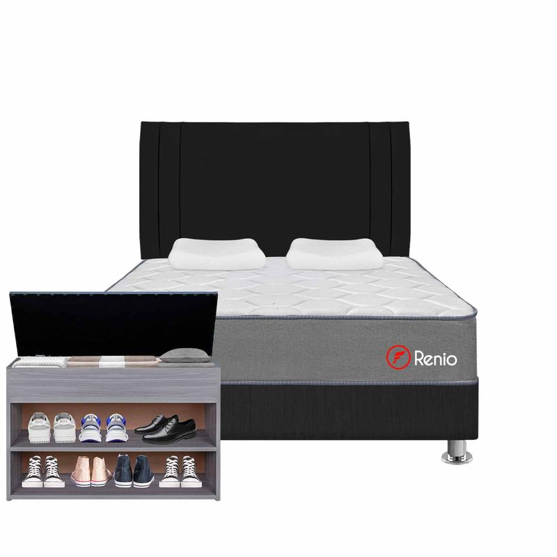 Colchón + Cabecera +Tarima + 02 Almohadas + Zapatera + Protector de colchón