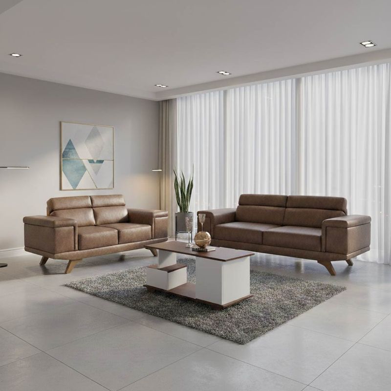 JUEGO DE SALA ALIYAH 3-2 CAPUCCINO + Centro de Mesa Juego de Sala Aliyah 3-2 Capuccino + Centro de Mesa